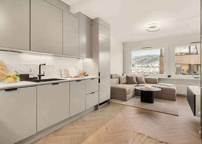 Im Modern And Cozy Apartment Only 5 Minutes From City Center Bergen, das rund 25 Minuten zu Fuß vom Hanseviertel Bryggen entfernt liegt, können sich die Gäste auf einer Terrasse entspannen.
